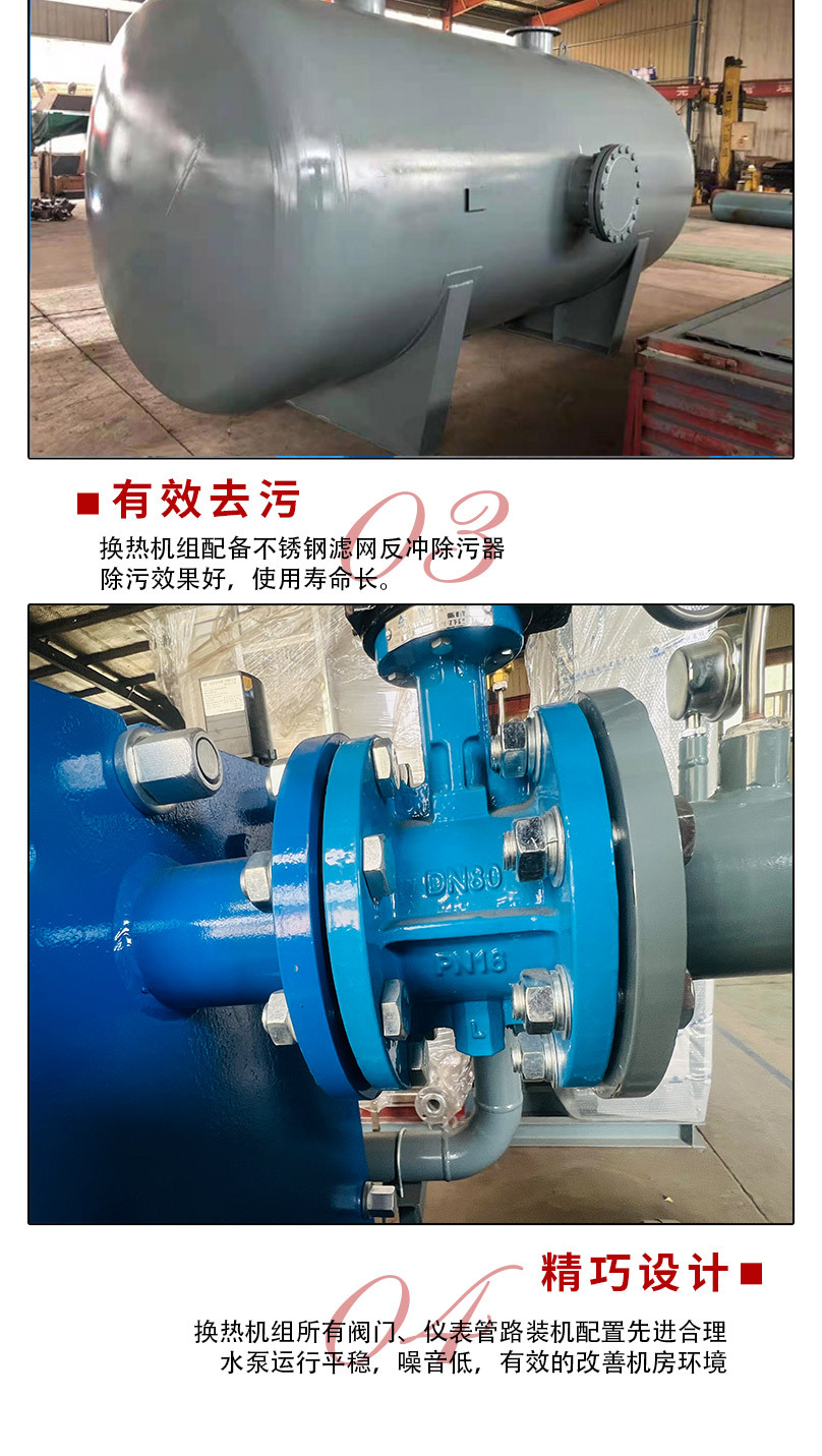 4、保持了容積式換熱器貯水量大,水頭損失低,供水安全穩(wěn)定,方便清垢之優(yōu)點(diǎn)。