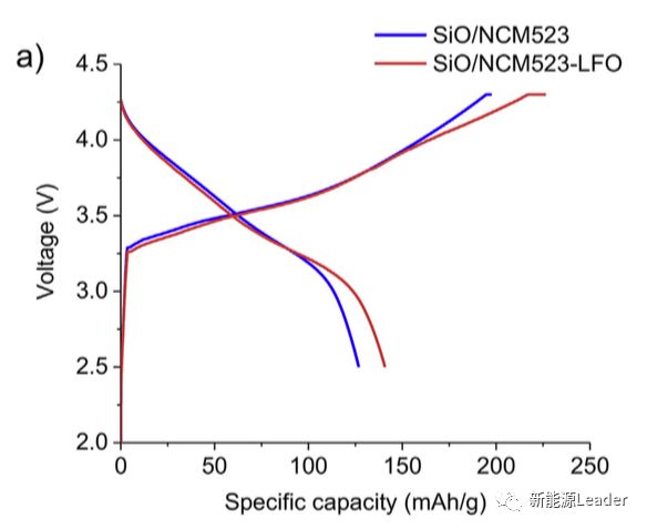 相比于負極補鋰,正極補鋰工藝最大的優(yōu)勢在于安全性和便利性,不改變現(xiàn)有的生產(chǎn)工藝,不需要引入新設備,僅僅是在勻漿過程中在正極漿料中加入部分高容量的含Li氧化物。2016年阿貢國家實驗的Wenquan Lu課題組首次報道了用于正極補鋰的Li5FeO4材料【1】,通過在LCO/硬碳體系中添加少量的Li5FeO4材料,首次效率提升10%,并改善了循環(huán)性能,最近他們又將該材料應用在SiOx/NCM523體系中,改善了SiOx材料首次效率降低的問題【2】,提升了鋰離子電池的比能量。
